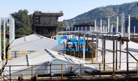 加盖密封:对曝气池、沉淀池、污泥池等区域采用玻璃钢加盖或钢支撑反吊膜加盖,减少无组织逸散。